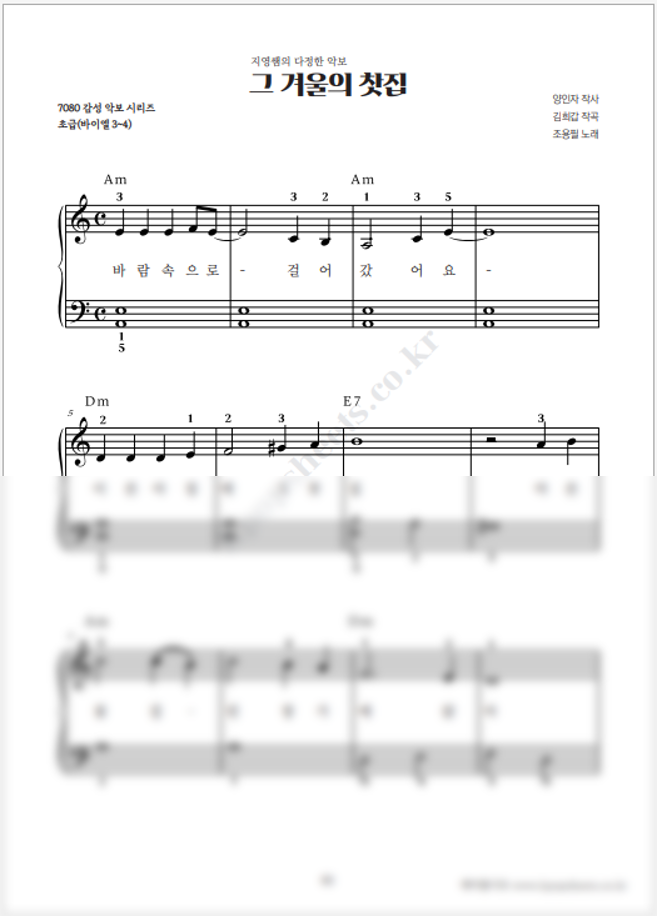 쉽지만 원곡이 들리는 지영쌤의 다정한 악보