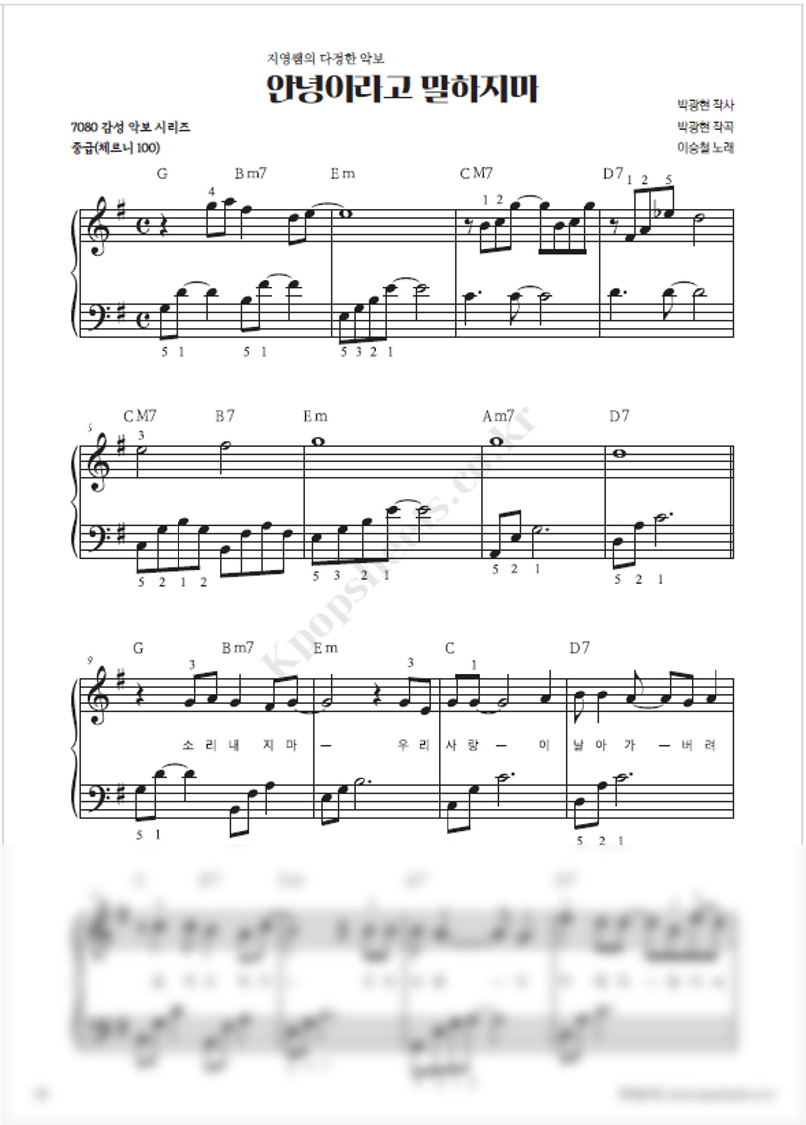 [중급] 이승철 - 안녕이라고 말하지마 (PDF)