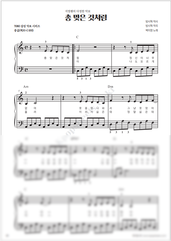 쉽지만 원곡이 들리는 지영쌤의 다정한 악보
