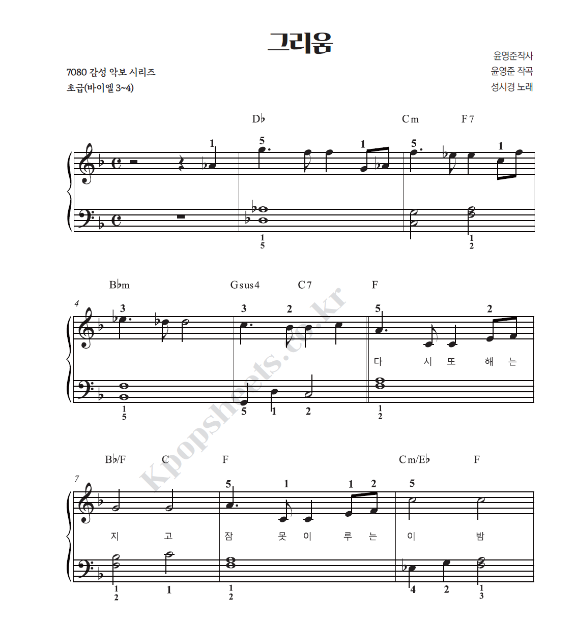 쉽지만 원곡이 들리는 지영쌤의 다정한 악보