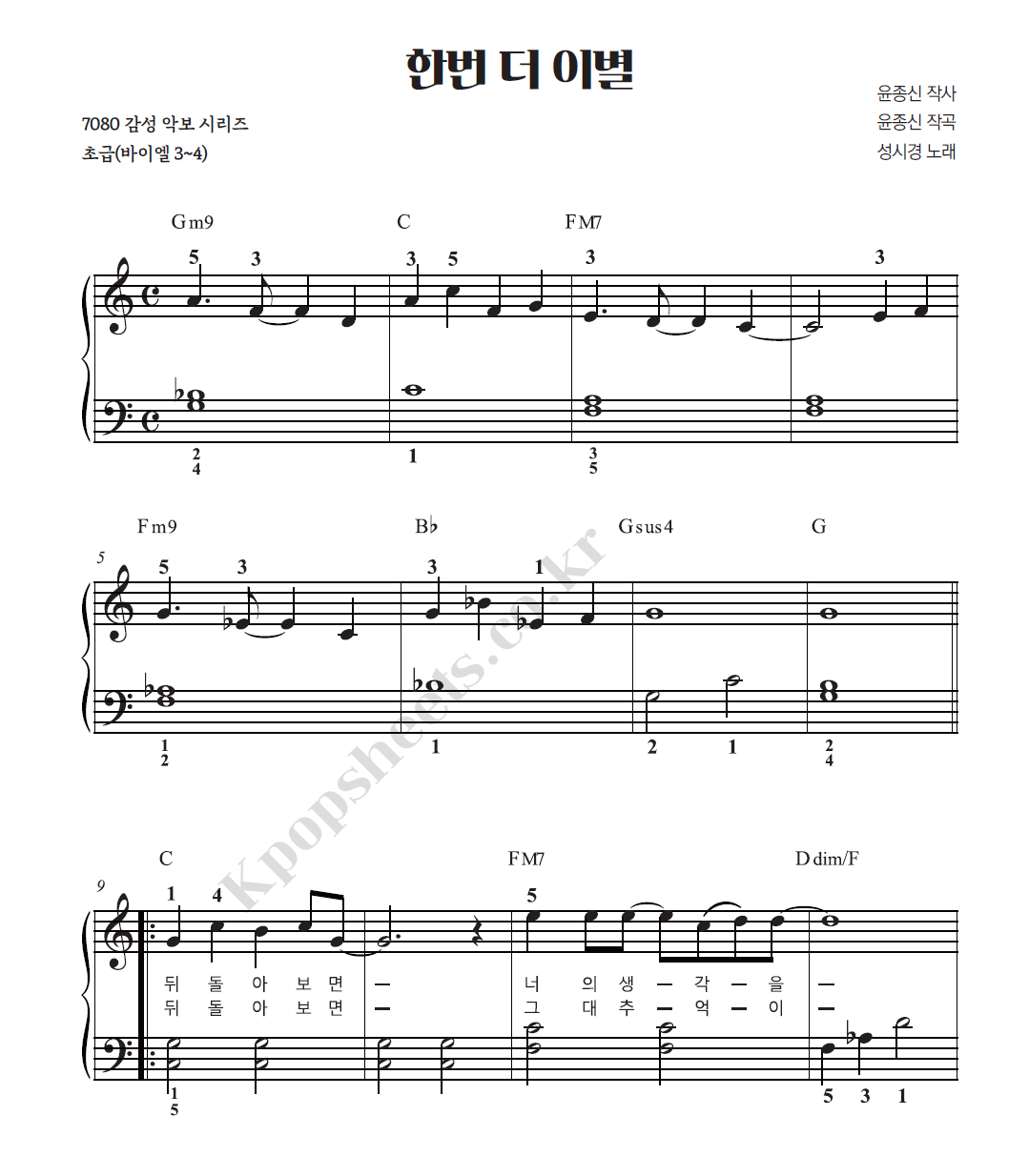 [초급] 성시경 - 한번 더 이별 (PDF)