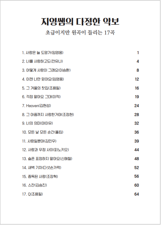 쉽지만 원곡이 들리는 지영쌤의 다정한 악보